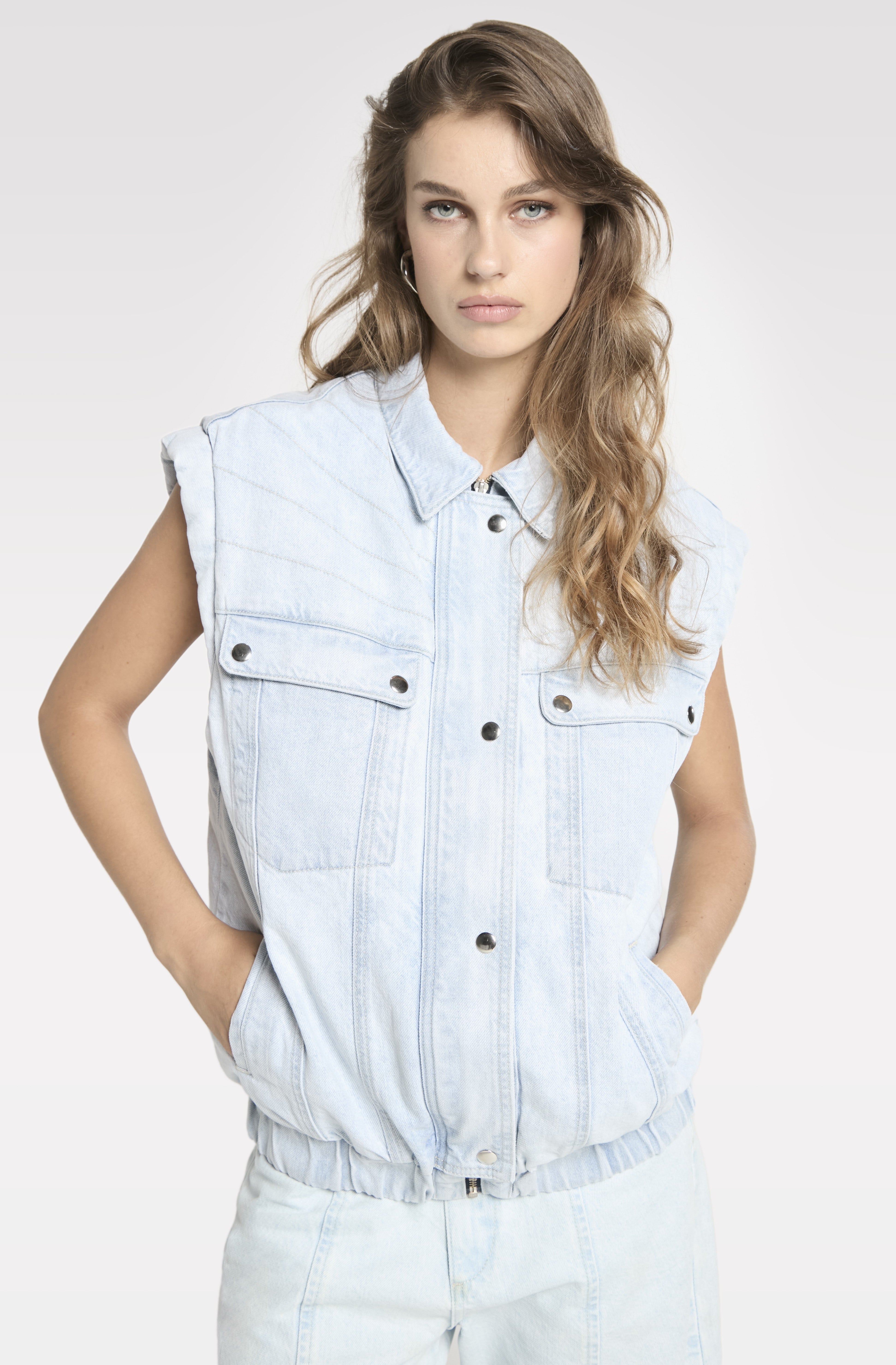 Effortlessly cool and versatile, the Padded Denim Body Warmer in Bleached Blue combines casual denim style with cozy, structured warmth. Crafted from a sustainable blend of cotton and recycled cotton, it offers a soft yet durable feel, while the padded construction provides light insulation without bulk. The Bleached Blue wash gives a sun-faded, lived-in character, making it the perfect layering piece for transitional seasons.