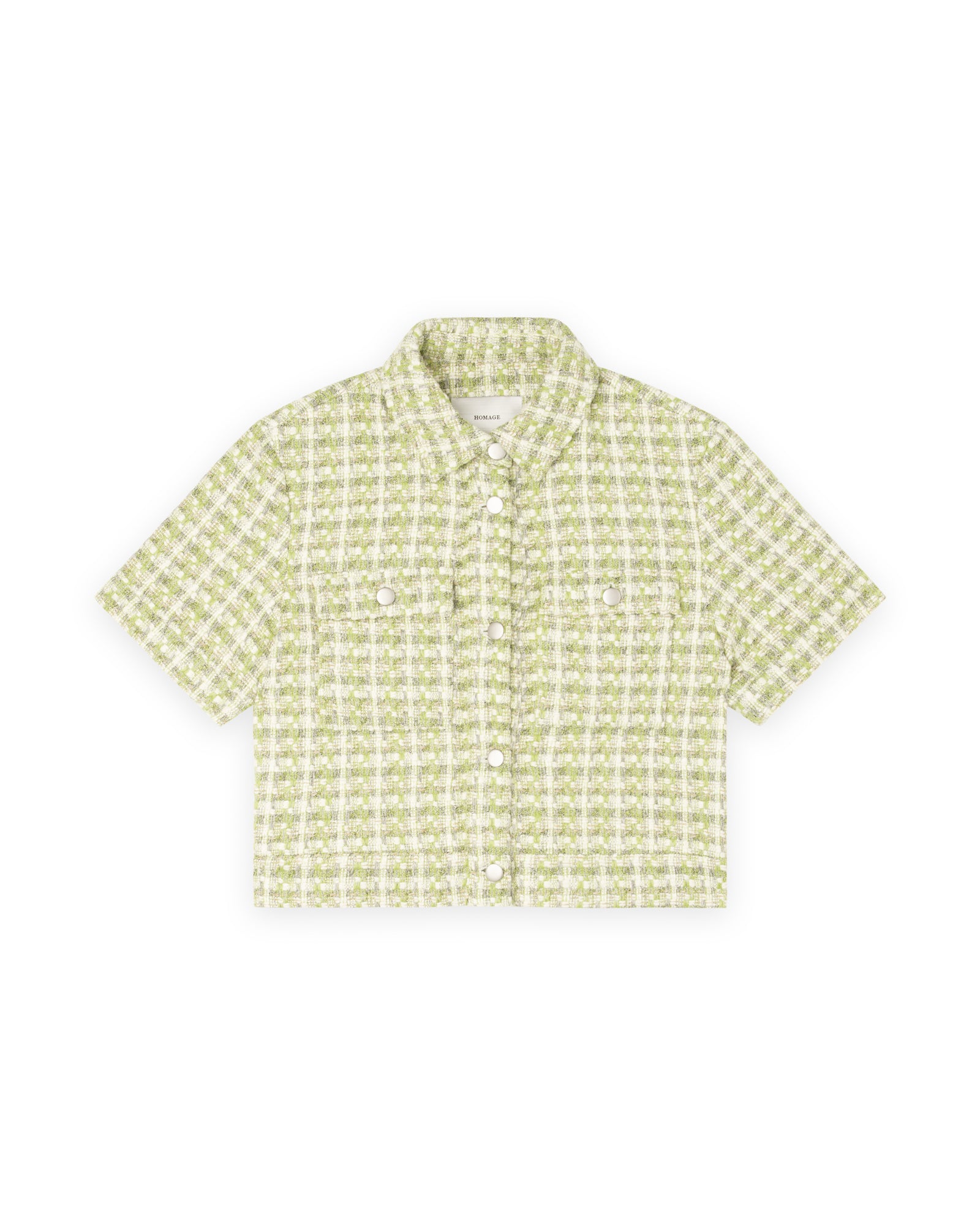 Vibrant and refined, the Tweed Jacket With Short Sleeves in Lime Mix brings a fresh twist to a timeless classic. Crafted from a textured blend of wool, acrylic, cotton, and polyester, it offers both structure and softness for effortless sophistication. The cropped silhouette and short sleeves create a modern, easy-to-layer shape, while the Lime Mix a lively interplay of yellow-green tones—adds a playful yet polished edge. Perfect for dressing up denim or pairing with tailored pieces, this jacket transitions seamlessly from day to evening.