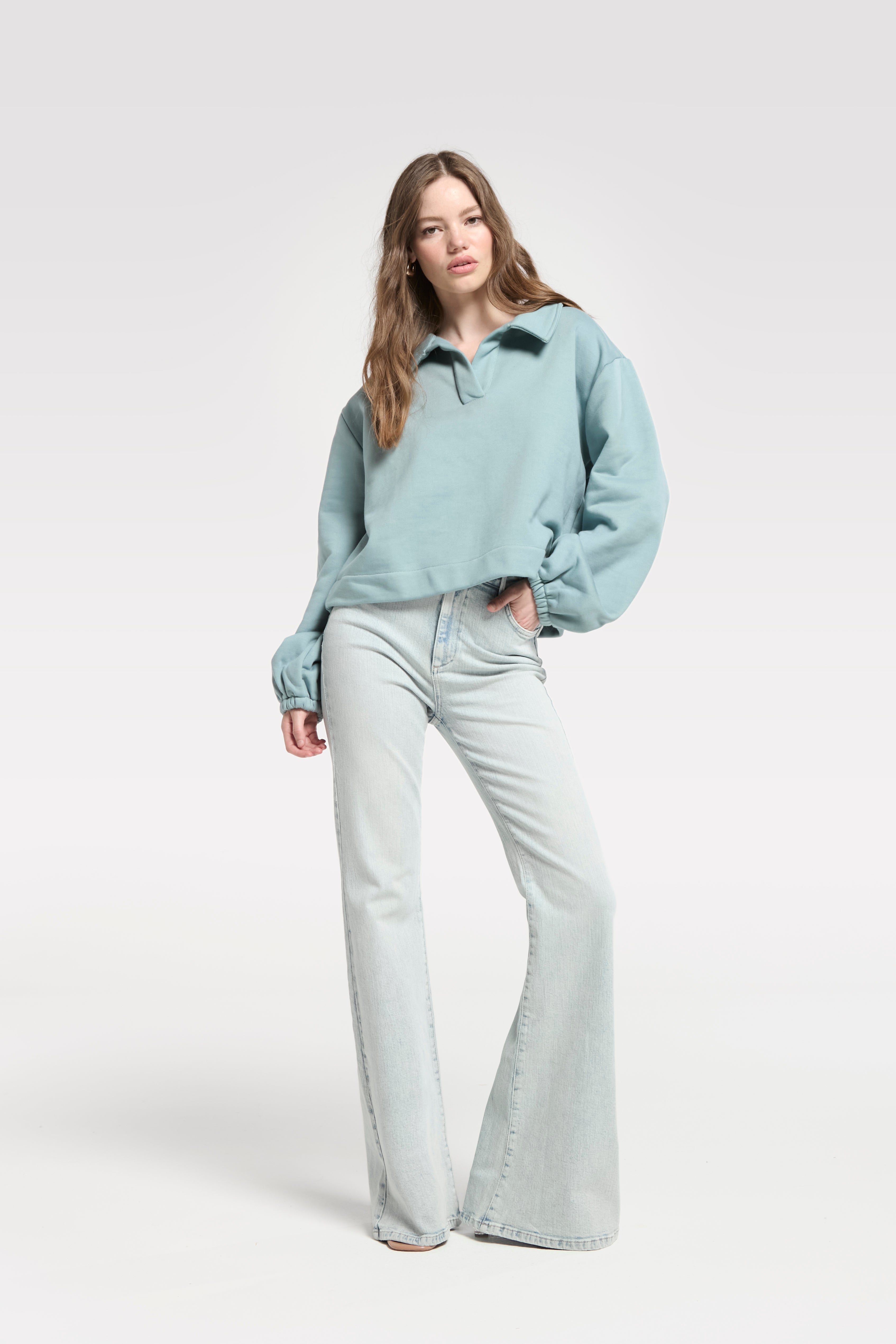 Retro-inspired with a modern edge, the Angelina Wide Flared Jeans in Light Blue bring effortless sophistication to everyday denim. Crafted from a soft, sustainable blend of cotton, recycled cotton, and a touch of elastane, they offer the perfect balance of structure and comfort. The high-rise waist elongates the silhouette, while the wide flared leg adds a touch of vintage flair—a timeless shape reimagined for today.