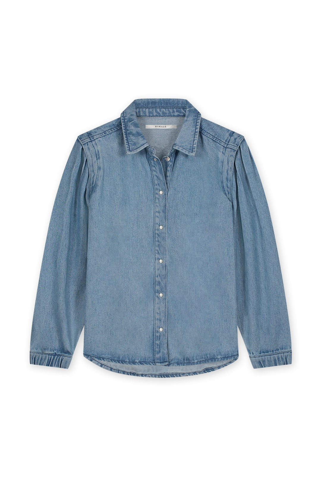 Onze 'Flowy Denim Blouse With Shoulder Details' is een verfijnd model van de originele tijdloze denim blouse. De blouse heeft klassieke HOMAGE-schouderdetails en is geaccentueerd met unieke parelmoer knopen. Gemaakt van 100% Lyocell is dit bloesje perfect voor alle seizoenen. Ga voor een classic double denim look door te stylen met onze Flowy Tailored Pants.