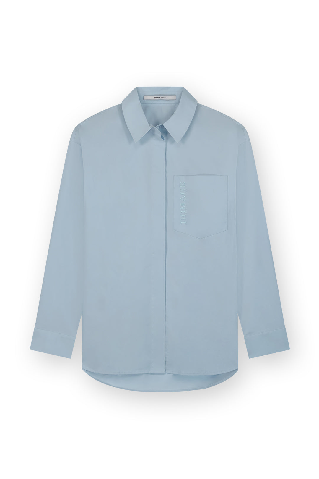 Onze 'Oversized Shirt with Logo Embroidery' verfijnt een klassiek model voor een tijdloze look. De blinde sluiting en het HOMAGE logo borduursel op de borstzak zorgen voor een elegante look. Gemaakt met 100% katoen is dit shirt perfect voor alle seizoenen, en is mooi gepaard met een paar HOMAGE jeans.