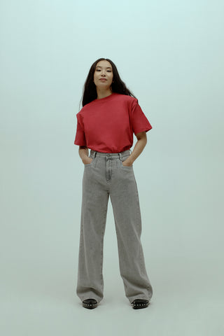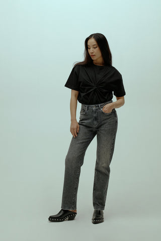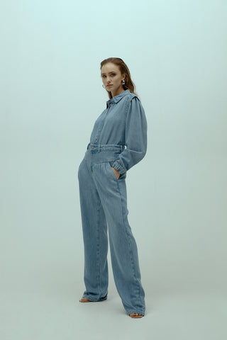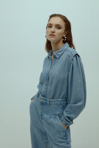 Flowy Denim Blouse With Shoulder Details