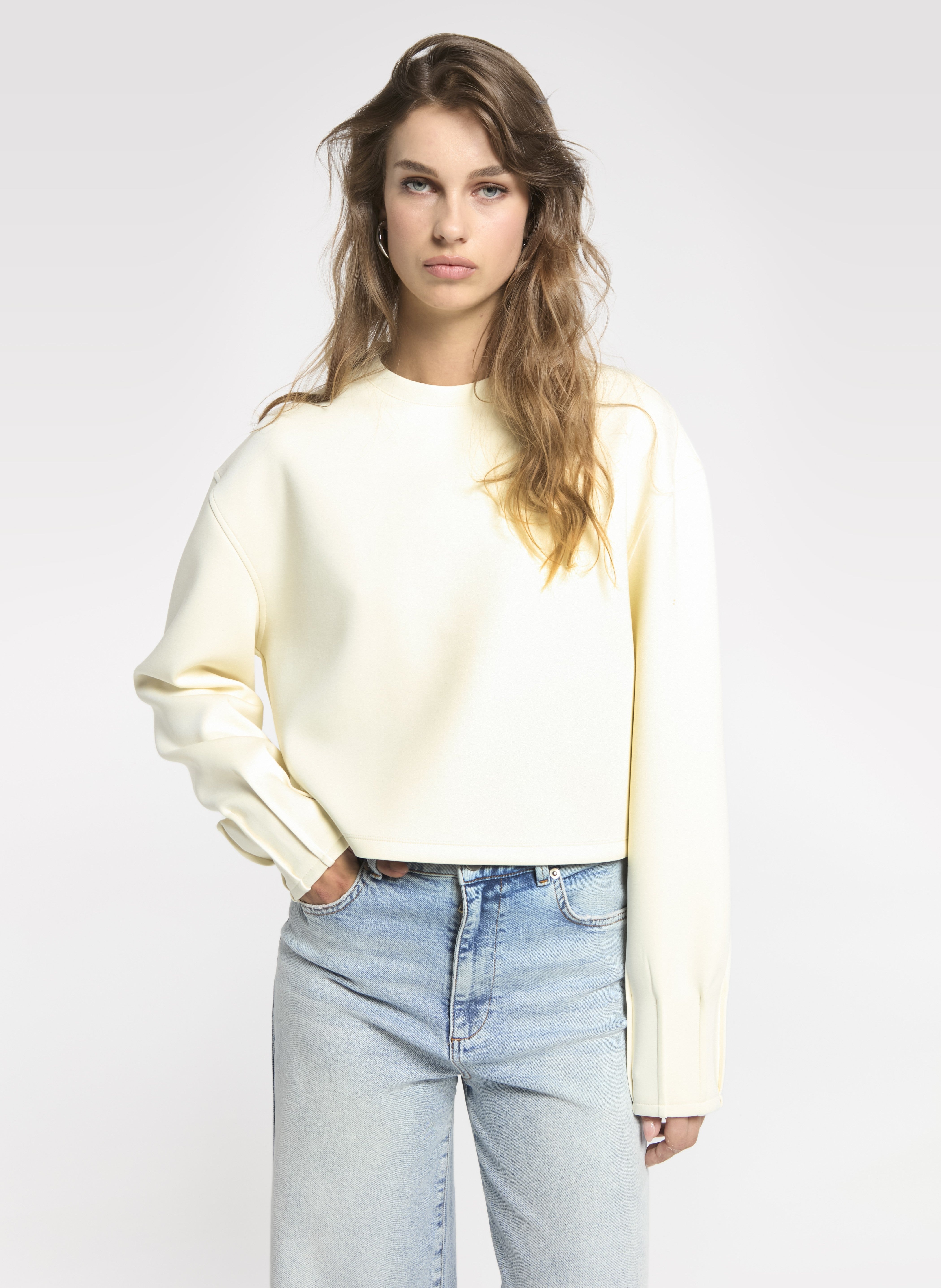 Effortlessly elegant with a touch of modern ease, the Top With Cuff Details in Soft Yellow brings understated sophistication to everyday dressing. Crafted from a smooth, lightweight blend of modal, polyester, and elastane, it drapes beautifully while offering gentle stretch for all-day comfort. The refined cuff detailing adds subtle structure and polish, balancing its relaxed silhouette with tailored finesse. The Soft Yellow hue lends a warm, luminous tone—ideal for brightening both casual and elevated looks.