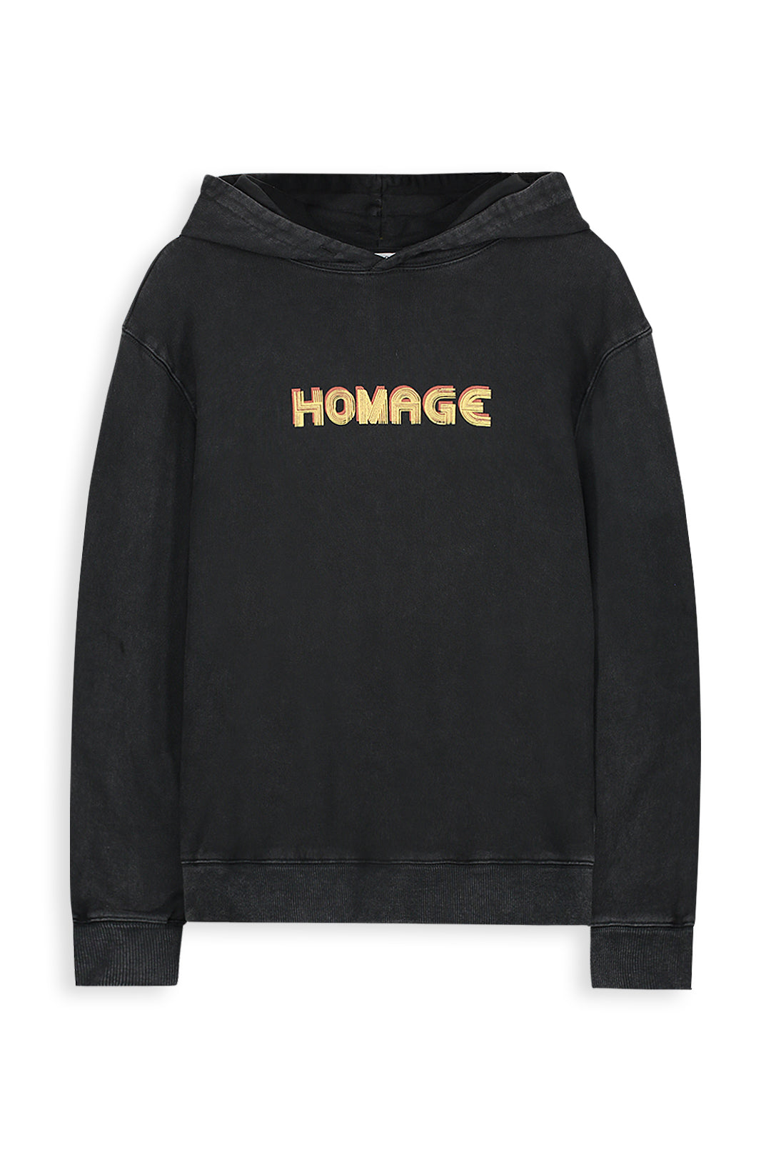 Did you know the hoodie is one of the most iconic pieces of the early 2000's? Yes, it is. And our first oversized HOMAGE hoodie was born with this FW'21/22 collection. Made with an anthracite garment dye for an authentic look with a yellow colored logo print. For a comfortable outfit, pair with one of our signature high rise jeans.